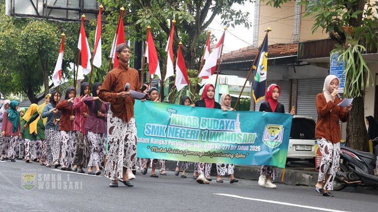 Jumat, 13 Februari 2026, keluarga besar SMK Negeri 1 Wonosari menggelar Kirab Budaya dalam rangka memperingati Hari Ulang Tahun Daerah Istimewa Yogyakarta ke-271. Mengusung tema “Mulat Sarira Jumangkah Jantraning Laku”, kegiatan ini menjadi momentum refleksi diri sekaligus penguatan karakter bagi seluruh warga sekolah. Semangat kebersamaan dan kecintaan terhadap budaya Yogyakarta begitu terasa sejak pagi hari di lingkungan sekolah.