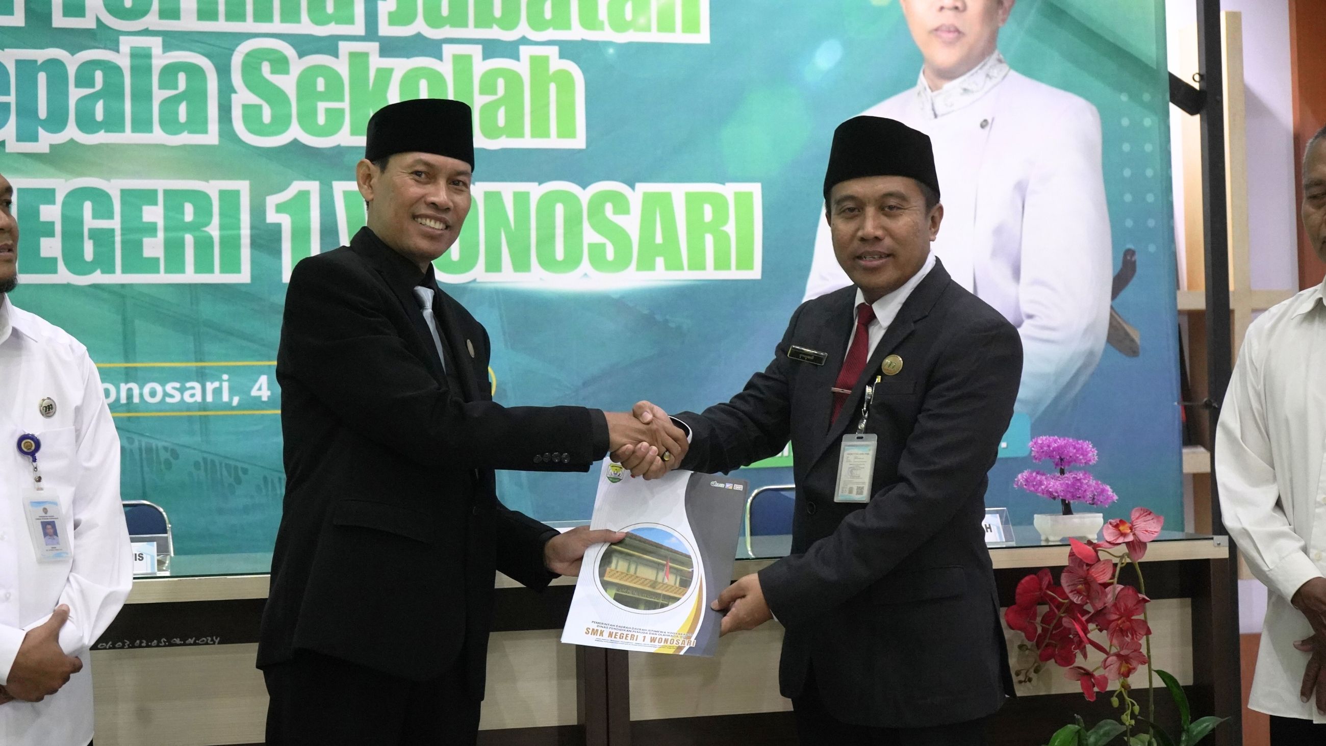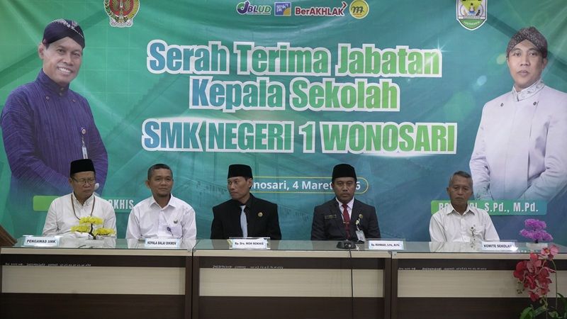 Serah Terima Jabatan Kepala SMK Negeri 1 Wonosari dari Drs. Moh Rokhis kepada Rohmadi, S.Pd., M.Pd. dilaksanakan pada Kamis, 4 Maret 2026 di Ruang Kumbokarno SMK Negeri 1 Wonosari. Acara berlangsung dengan khidmat dan penuh kehangatan, dihadiri oleh Kepala Balai DIKMEN Gunungkidul Wasidi, S.E., M.Si., Kapolsek Wonosari, Panewu Wonosari, serta tamu undangan lainnya. Rohmadi, S.Pd., M.Pd. hadir didampingi keluarga dan rombongan dari keluarga besar SMKN 1 Godean yang turut memberikan dukungan pada momen penting tersebut.